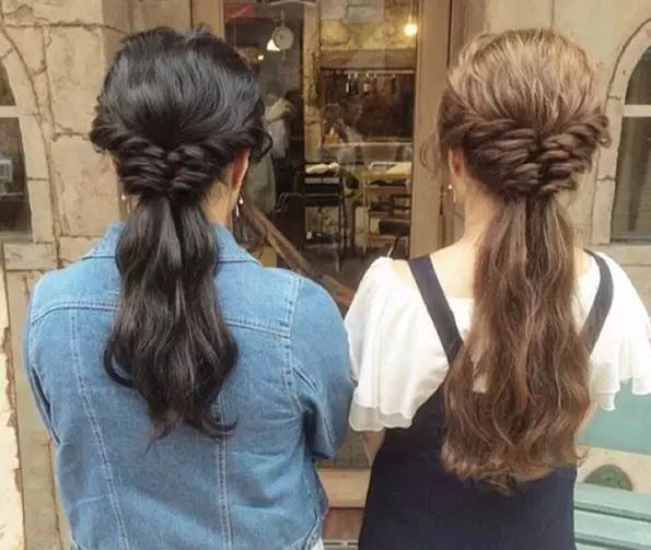 看到以下这款编发感觉很复杂的样子!其实它非常的简单非常的适合文静内敛的姑娘,此款发型用扭麻花的方式将它们集结在中间,在分别轻轻的把两边的辫子扯松,在用发圈做固定,一层一层的来,多分层就多层次!简单实用。