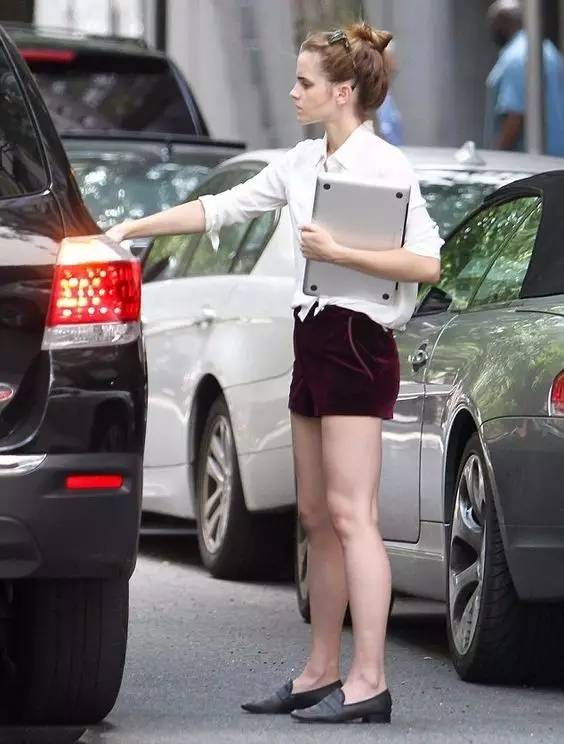 齐刘海有效地隐藏住达妹(Dakota Johnson)的大额头和高发际线,眉毛到下巴呈现标准的鹅蛋脸型,五官也柔和年轻了许多。这才是《五十度灰》里可爱的安娜。