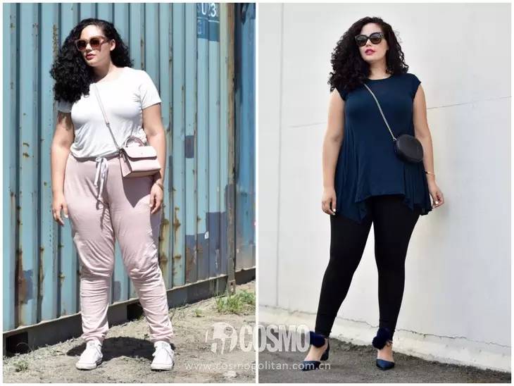美妆博主Sarah Blodgett,跟上面几位比,充其量也就是个微胖。白t和吊带搭配西装外套,哪个好看一目了然了吧!