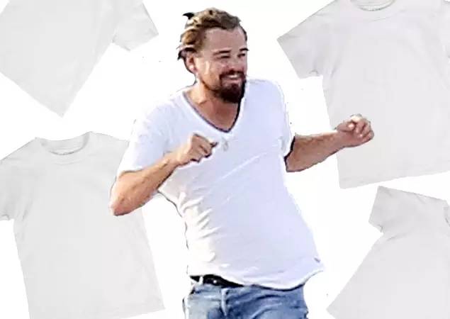 说起来小李子被发现发福时也是穿着一件白t,只能说白t让他活出来潇洒和自在!