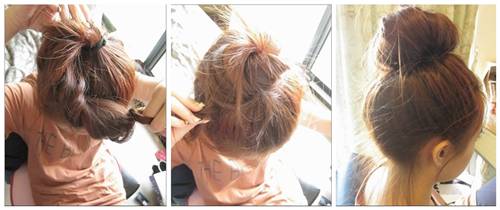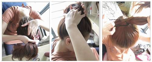 第一步就是把你的头低下来,把头发集中到头顶的位置,要高一点哦。