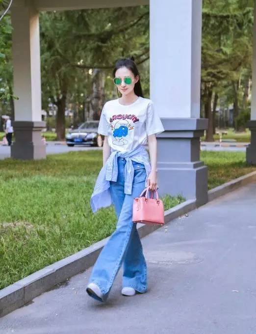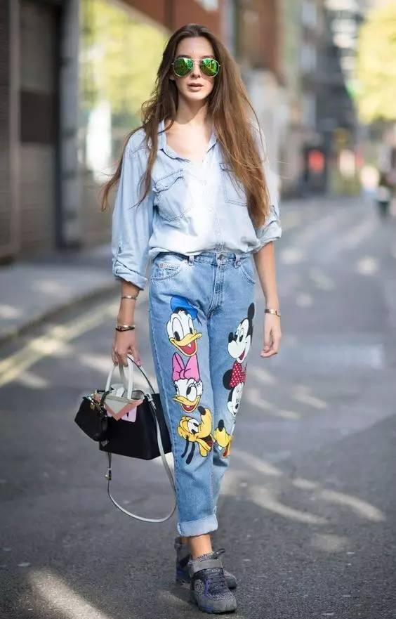 又或者是特别有辨识度的卡通涂鸦仔裤,楼下这身,看一眼就爱上了呢。