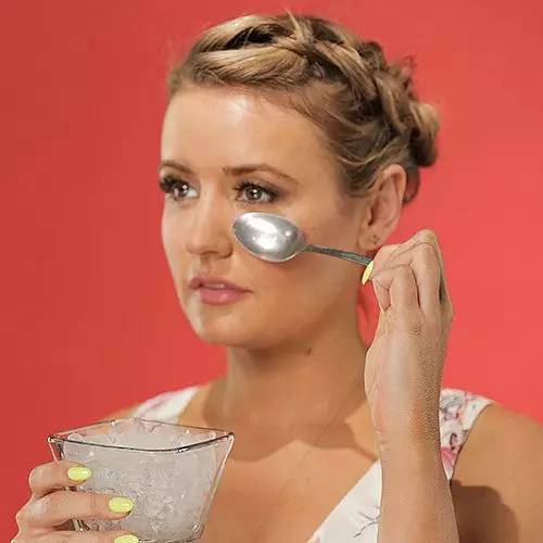 然后取冰镇过的勺子,敷在同样的位置,使皮肤冷却,封闭紧缩刚刚因热水而打开的毛孔。