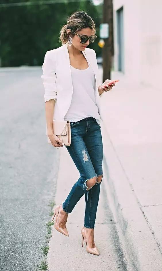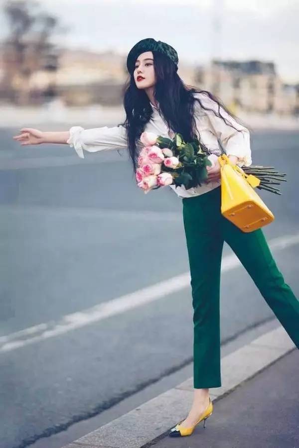 色彩弱化法,上浅下深得颜色搭配,可以使整个人看起来纤细很多