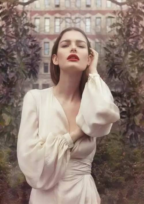 泡泡袖比一字肩更起到遮肉的效果,丝质的长泡泡袖复古性感