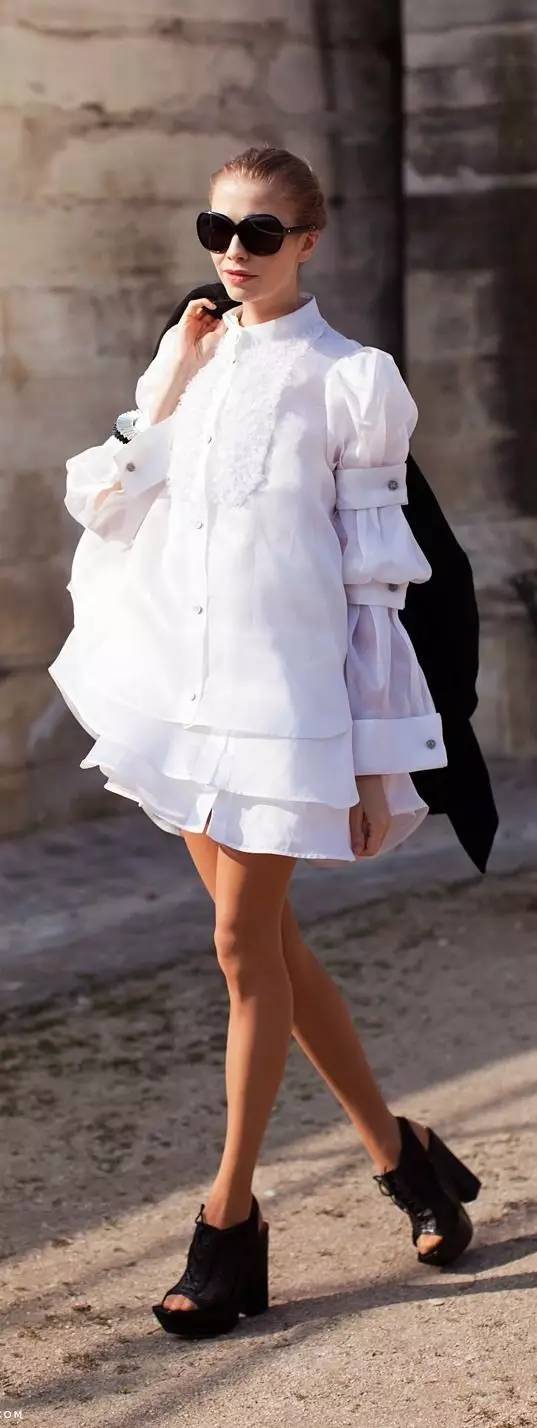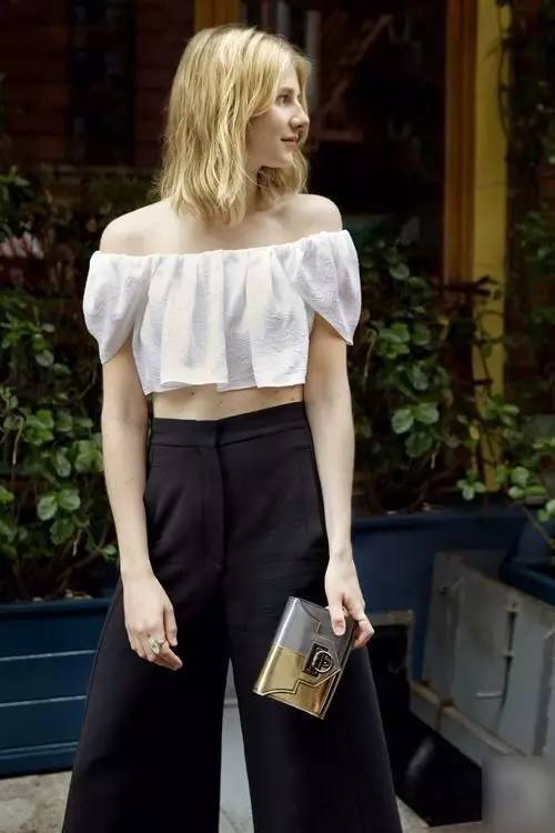 对于上半身偏胖,尤其是胳膊上有拜拜肉的MM,一字肩和泡泡袖无疑是最好的选择
