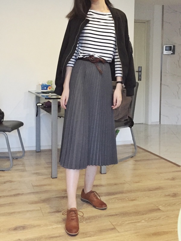 这时候体感就有点凉了,建议披个外套,薄一点的MA-1,刺绣外套都能上了,或者穿裙子的薄一点的外套也该上了。