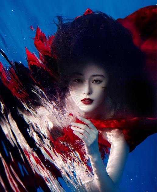 如果你觉得仅仅“挨饿受冻”还不算啥,那么范爷的这组水下大片呢?憋气下水十几个来回可还行?明明呼吸都成问题了,还要摆出美美的pose,表情还得是一脸享受,你们说这拍个大片容易吗?