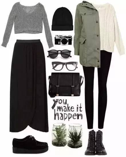 如果北鼻觉得香芋紫太过于甜美,又觉得自己腿比较粗可以选择这样的风格。上衣选择短款,适当露出你得小蛮腰,在搭配长裙,厚底鞋,大长腿也是分分钟的事情呢!