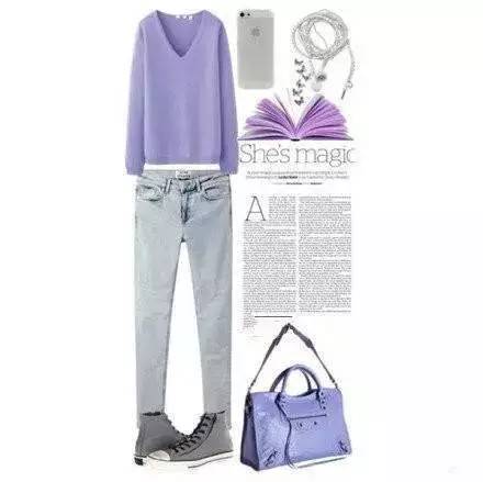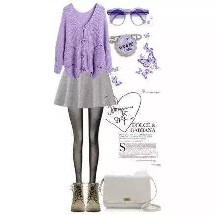 香芋紫搭配灰色,温暖又舒心,毛衣运用双色拼接,蕴含了巧妙的心意~北鼻们也可以这么借鉴哦!